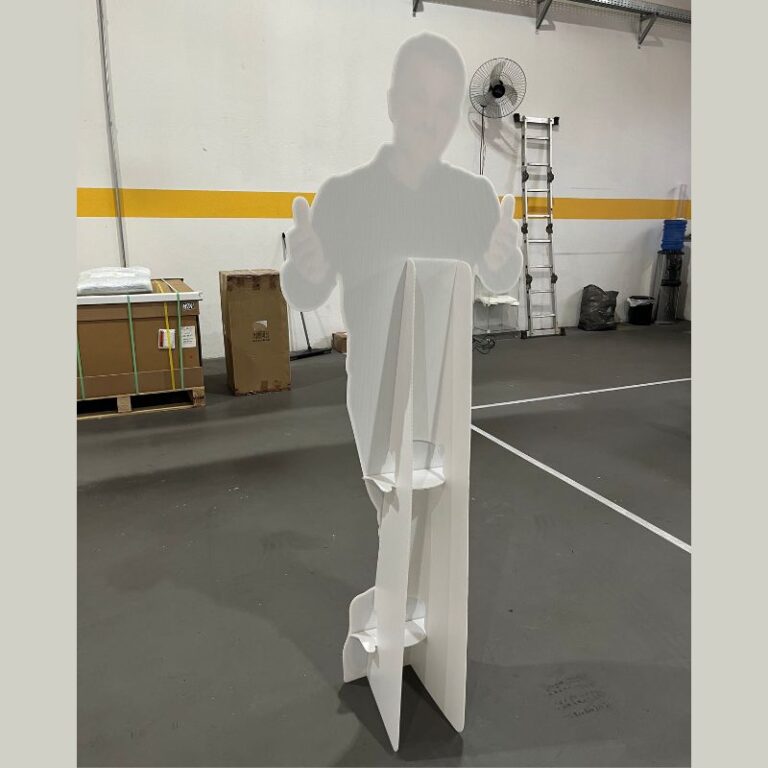 A produção do Totem Pessoa é totalmente personalizada. Você pode selecionar o material mais adequado para seu Evento ou Campanha, como; Polionda, PVC Expandido, MDF, P.S. ou Papelão Microondulado.